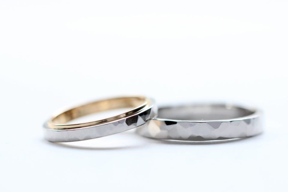 プラチナ‐K18イエローゴールド 槌目 3㎜幅 鏡面仕上げ コンビカラー
