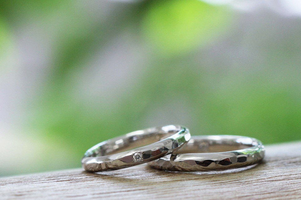 プラチナ 槌目(甲丸) 2.5㎜幅 鏡面仕上げ ダイヤモンド