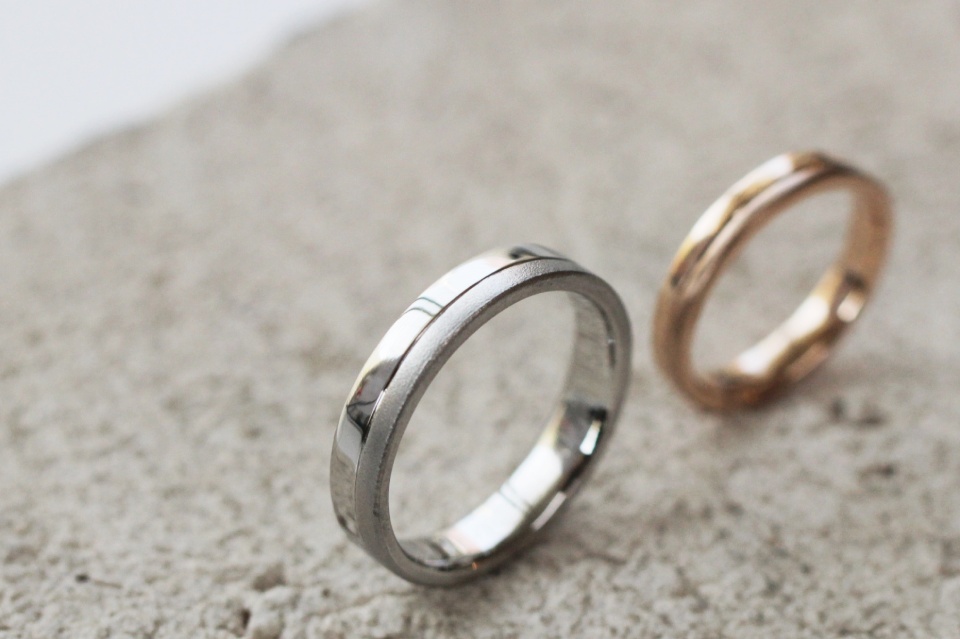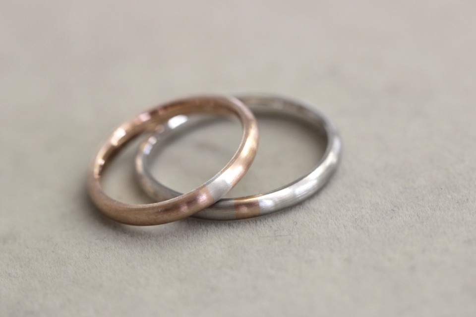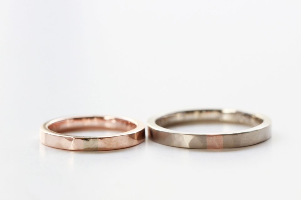 K18ホワイトゴールド‐K18ピンクゴールド 槌目 2.5㎜幅 マット加工 コンビカラー