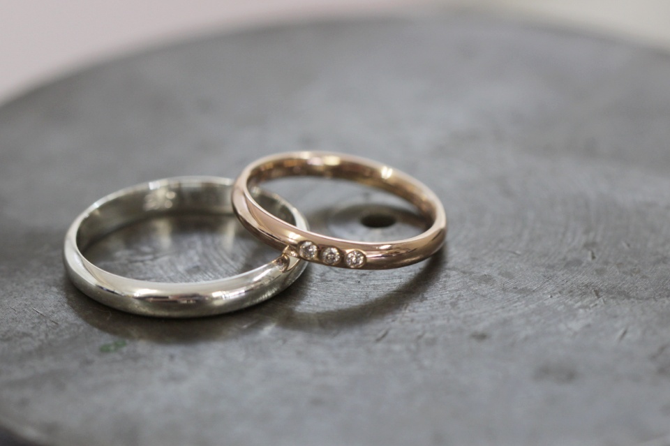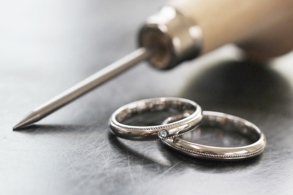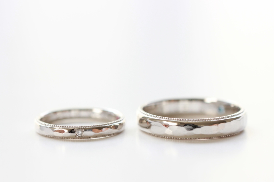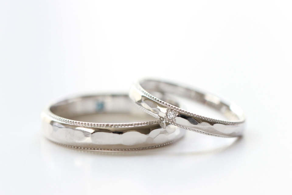 プラチナ 槌目(甲丸) 3㎜幅 鏡面仕上げ ミル打ち ダイヤモンド