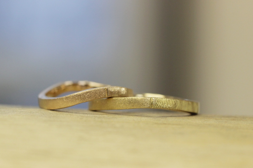 K18イエローゴールド 平打(波打ち) 2㎜幅 マット加工 ライン