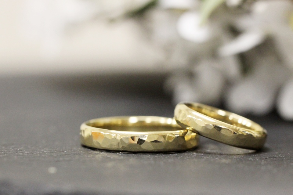 K18イエローゴールド 槌目(甲丸) 4㎜幅 鏡面仕上げ
