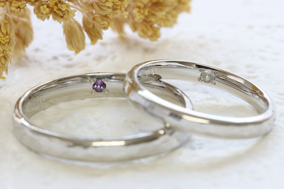 プラチナ 槌目(甲丸) 3㎜幅 鏡面仕上げ アメジスト
