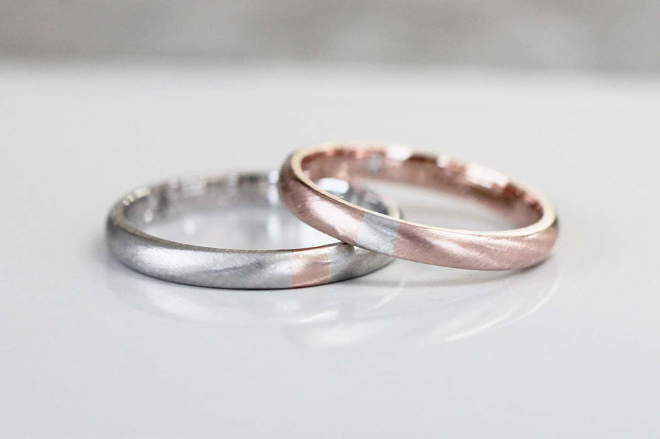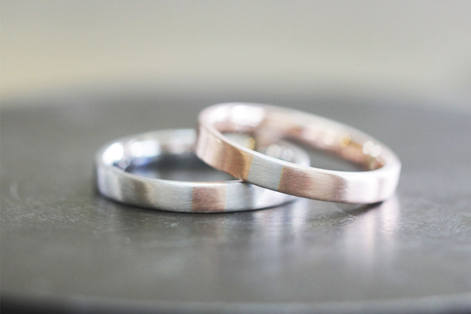 プラチナ-K18ピンクゴールド 甲丸 3㎜幅 マット加工 コンビカラー