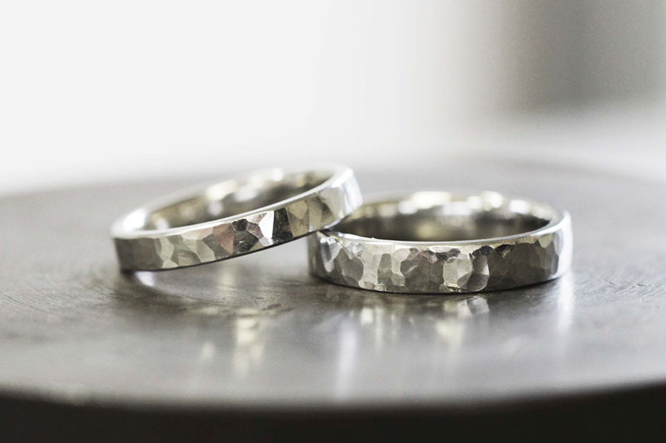プラチナ 槌目 4㎜幅 鏡面仕上げ