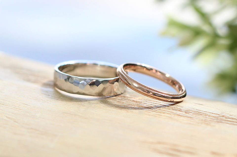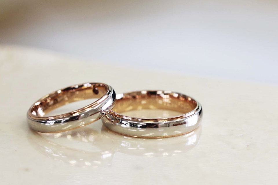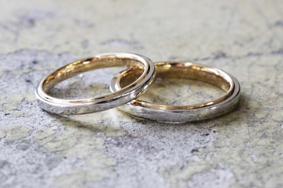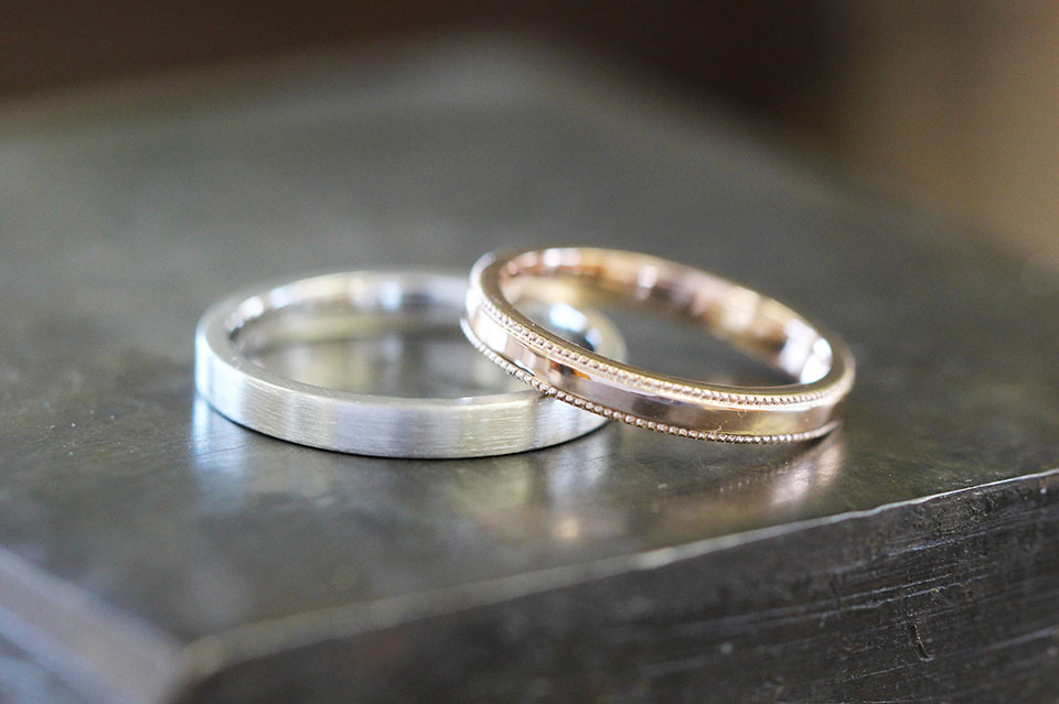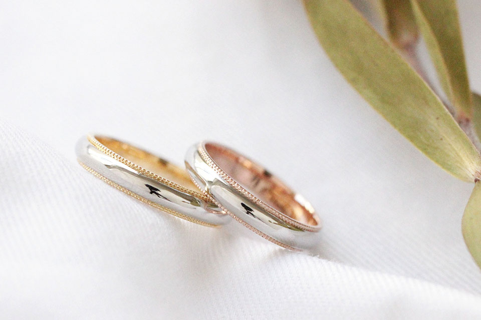 プラチナ-K18ピンクゴールド 甲丸 4㎜幅 鏡面仕上げ コンビカラー ミル打ち