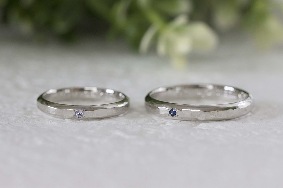 プラチナ 槌目(甲丸) 2.5㎜幅 鏡面仕上げ タンザナイト