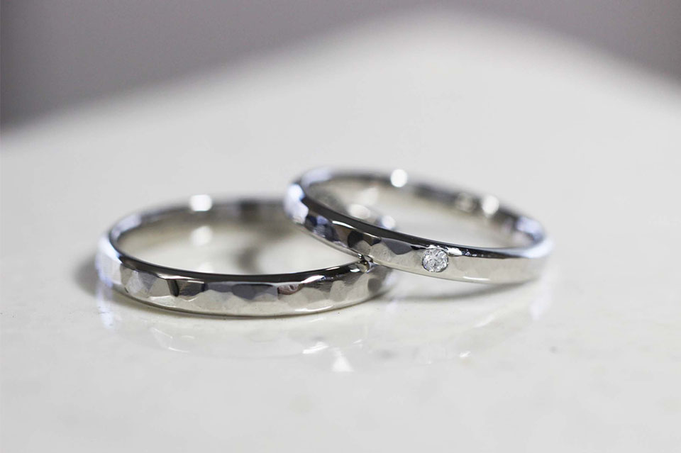 プラチナ 槌目(甲丸) 2.5㎜幅 鏡面仕上げ ダイヤモンド