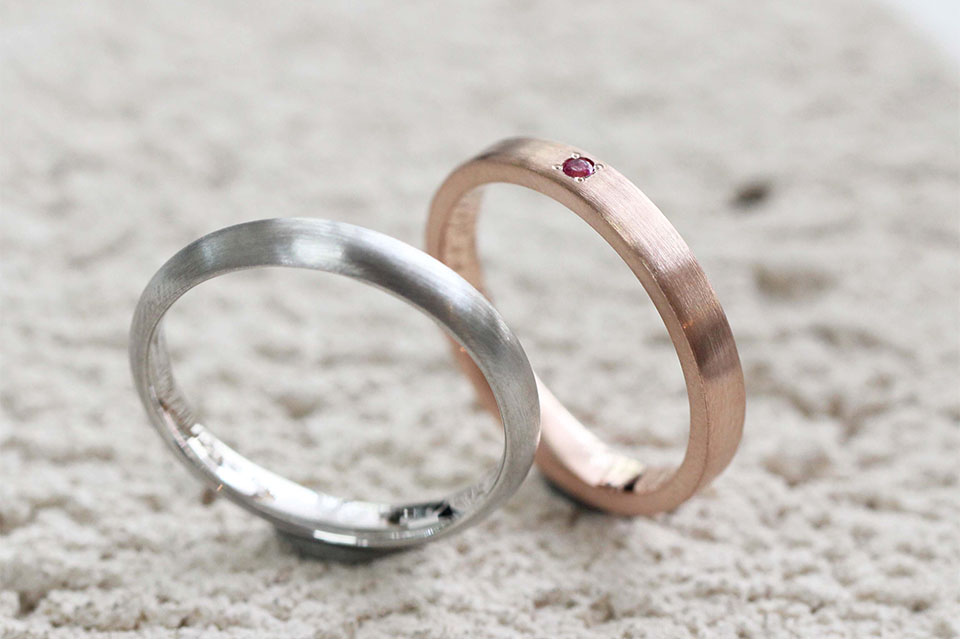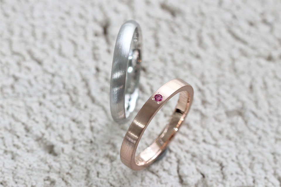 K18ピンクゴールド 平打 2.5㎜幅 マット加工 ルビー