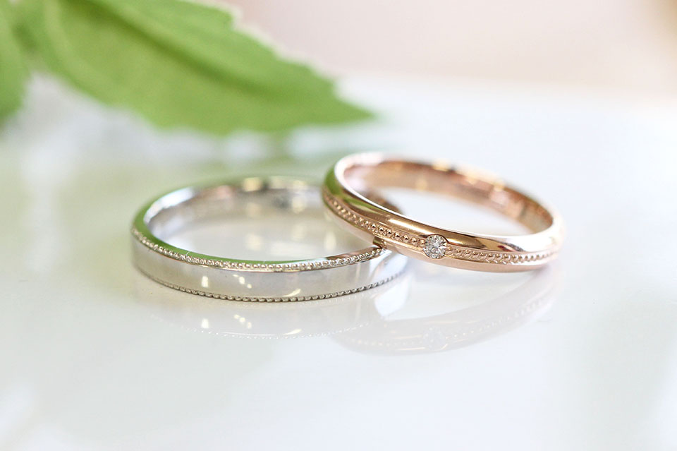 K18ピンクゴールド 甲丸 3㎜幅 鏡面仕上げ ミル打ち ダイヤモンド