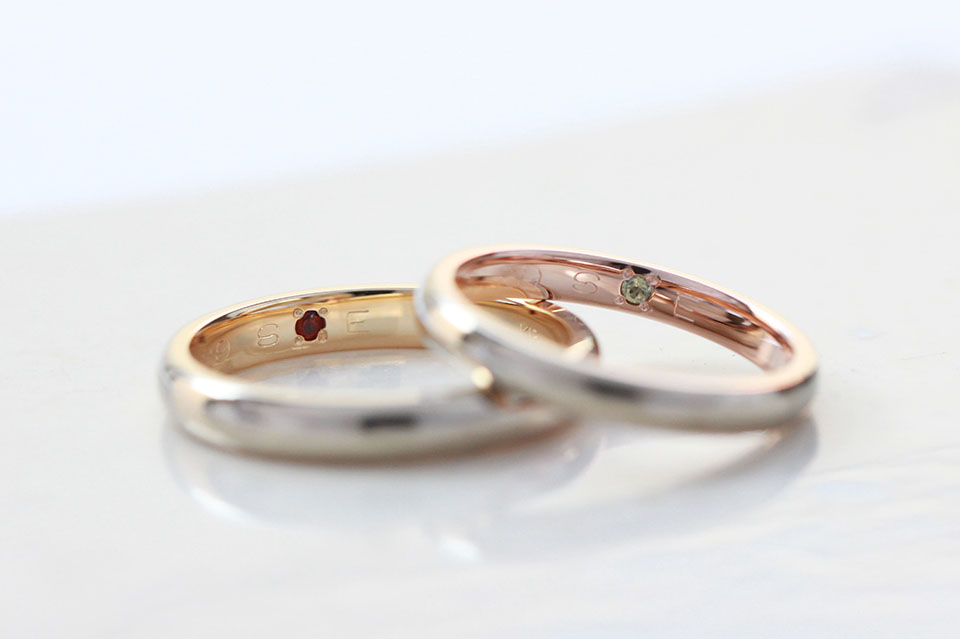 プラチナ-K18イエローゴールド 甲丸 3㎜幅 鏡面仕上げ コンビカラー ガーネット