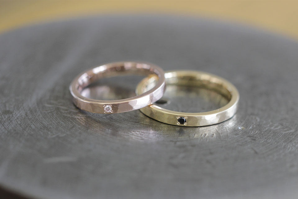 K18ピンクゴールド 槌目 2.5㎜幅 マット加工 ダイヤモンド