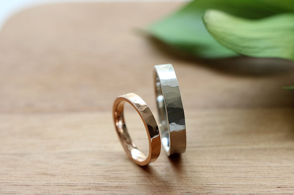 K18ピンクゴールド 槌目 3㎜幅 鏡面仕上げ