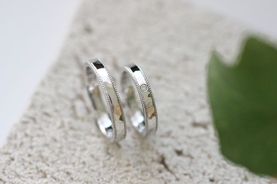 プラチナ 槌目 3㎜幅 鏡面仕上げ ミル打ち ダイヤモンド