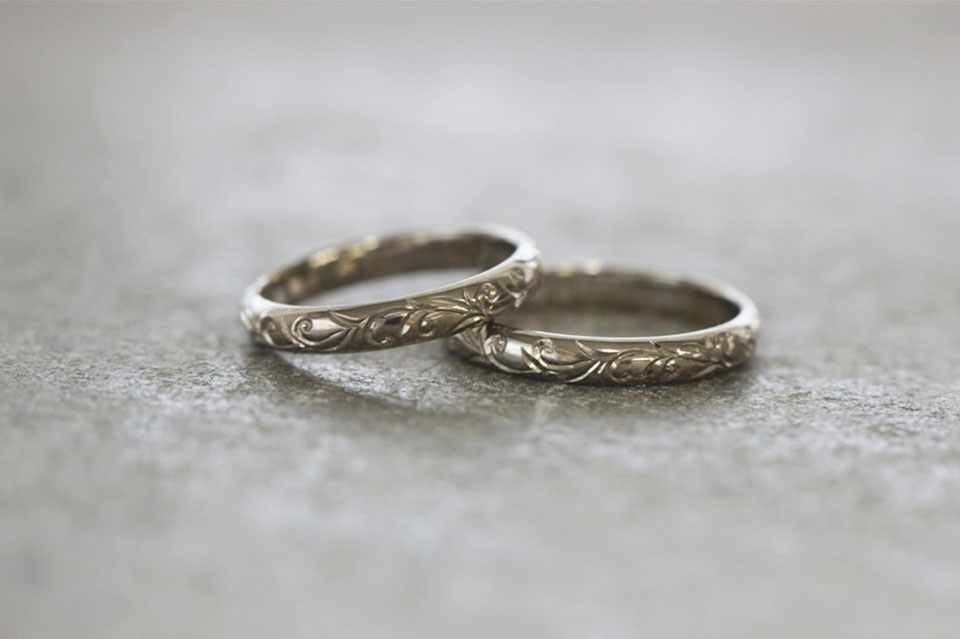 K18ホワイトゴールド 甲丸 3㎜幅 鏡面仕上げ 手彫り