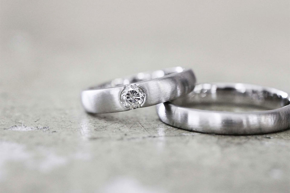 プラチナ 甲丸 4㎜幅 マット加工 ダイヤモンド