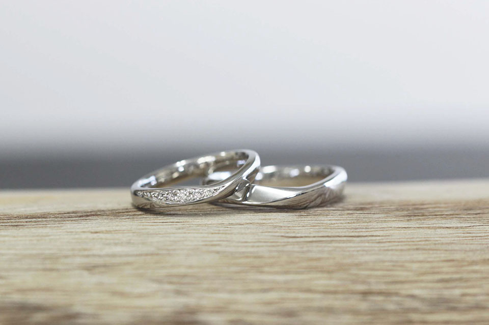 プラチナ オリジナルデザイン(波打ち) 2.5㎜幅 鏡面仕上げ ダイヤモンド