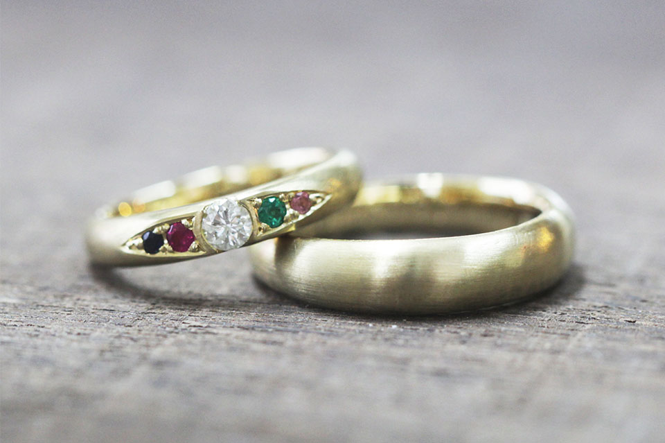 K18イエローゴールド 甲丸 3.5㎜幅 マット加工 サファイア ルビー ダイヤモンド エメラルド ピンクトルマリン