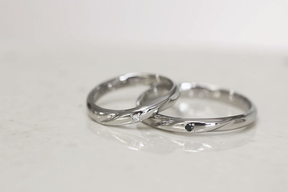 プラチナ オリジナルデザイン 2.5㎜幅 鏡面仕上げ ブラックダイヤモンド