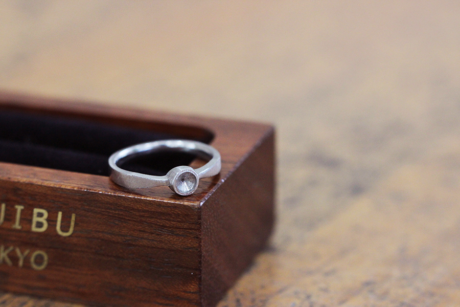 完成した指輪は預からせていただき、最終仕上げとなる中央にダイヤモンドを留めていく作業をこちらで担当いたしました。